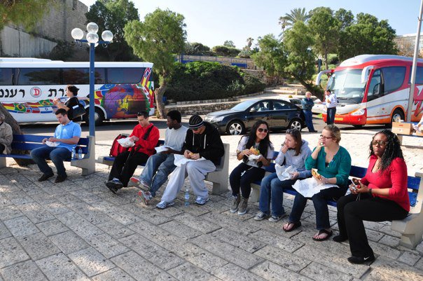 By our second day, Lloyd had christened me NBT – Nothing But Trouble. I feel like once you give someone a name like that, there are forces that bind him or her to live up to it. There were plenty of Minties Moments but the one that people like to remind me of is when we went to the Safed – the mystical city of Kabbalah. As we walked around I told a few people that Madonna makes her way there once every year to do Pilates but that’s not the story – what happened was everyone was told they had half an hour of free time before meeting back on the bus. I’m not one to be late and I was happy to just play on my phone since we had WiFi for the first time in a couple of days so I went over to the bus by myself to check my messages. The signal was pretty faint though. As I moved around I discovered I got the most bars when I sat behind the back of the bus. So I’m having myself a good time on my phone – replying to emails and updating Facebook when I look at my watch and realise that over an hour’s passed since we were told to rendezvous. I’m thinking, “where the frick is everyone?” I stand up, turn around to look into the back window of the bus and the WHOLE class has already boarded. One of the kids spots me and yells out “THERE HE IS!” They all turn to look and start hollering at me all at once. Come to find out they had sent out a search party for me 40 minutes ago, yelling my name through the streets tryna find me. I don’t know if it’s cuz I zoned out or what but I didn’t hear or see anyone doing all that.
