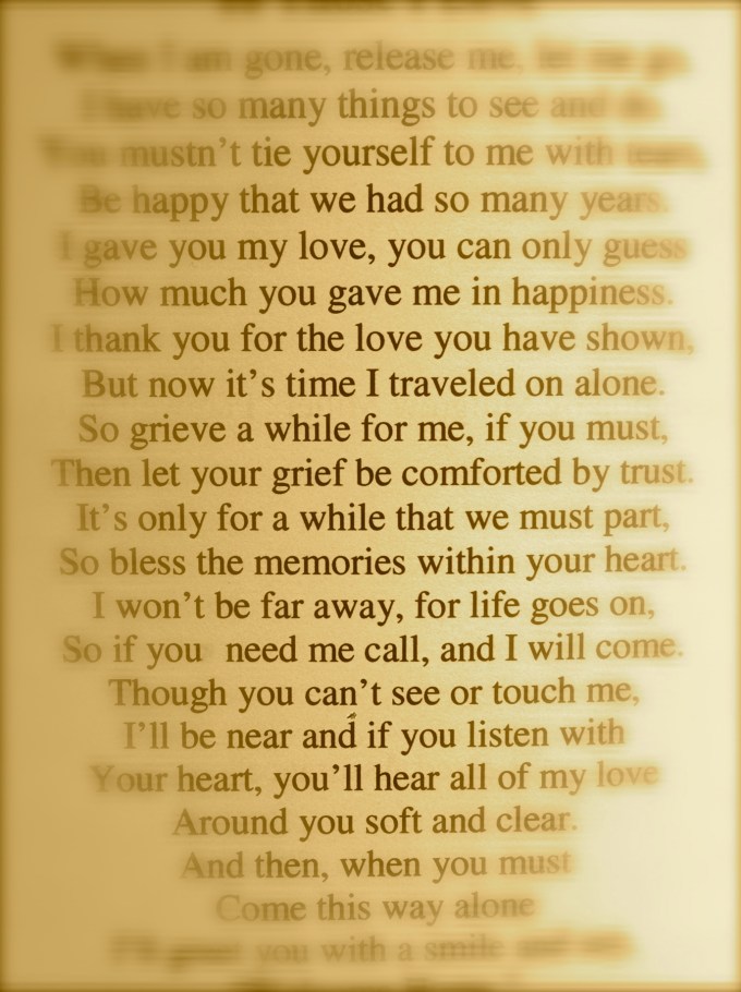 – Keep things in perspective.  There’s always someone who has it worse and there’s still so much to be thankful for – the time you had together, your family and friends, your future…