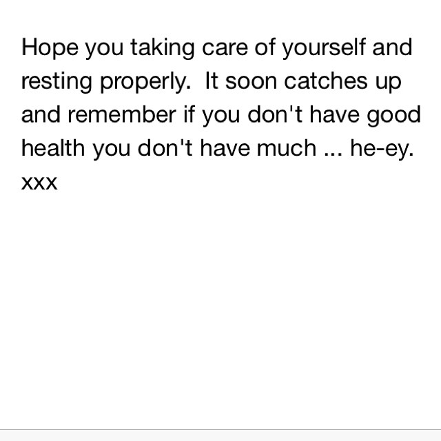 Make sure you take the time to look after yourself. Reach out if you need to. My Mum always says “if you don’t have good health, you don’t have much” – physical, mental, spiritual, whatever. Do what it takes to keep it all in check. Love to all my family and friends who help me do that.